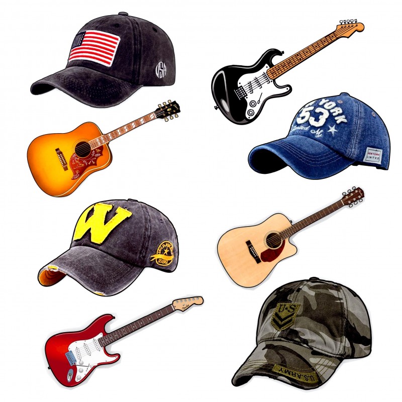 Apliques gorras y guitarras