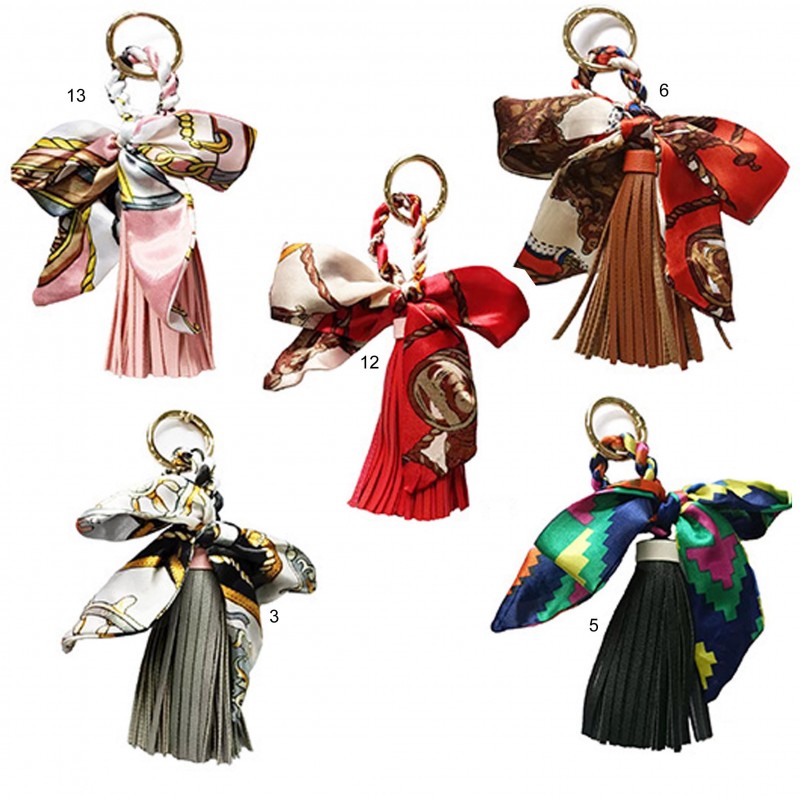 Colgante de lazo y borla en símil piel con mosquetón metálico 16 cm aprox.